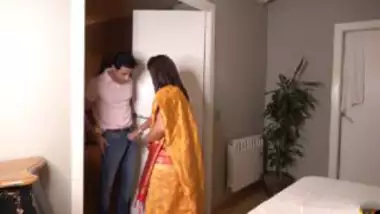 This hot chachi and her daughter were expecting this guy eagerly. Both are meeting him after a long time and mom and daughter have a crush on him. When he came in, his cousin rushed and hugged him tightly. She was rubbing her big boobs against his chest to send him her idea. He goes to the restroom and his penis gets stuck in the chain. When he calls for help, his chachi comes there. She rubs the cock nicely and softly and it has made his tool hard. Holding it, she brings him to the bedroom. Now, she removes her saree and starts to suck it nicely before a wild chudai.